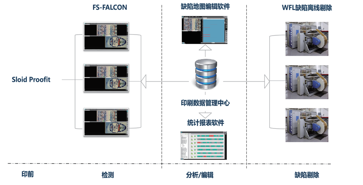 适用卷料包装印刷品表面质量检测,实现不同宽幅卷料的高精度、自动化的实时检测,及时检测墨点、脏版、刀线、色差、 异物等缺陷,确保产品质量一致性,杜绝材料浪费,降低生产成本。适应于卷料产品在线印刷、复合、涂布、淋膜、分切,离 线大复卷、小复卷检测/剔除等场景。